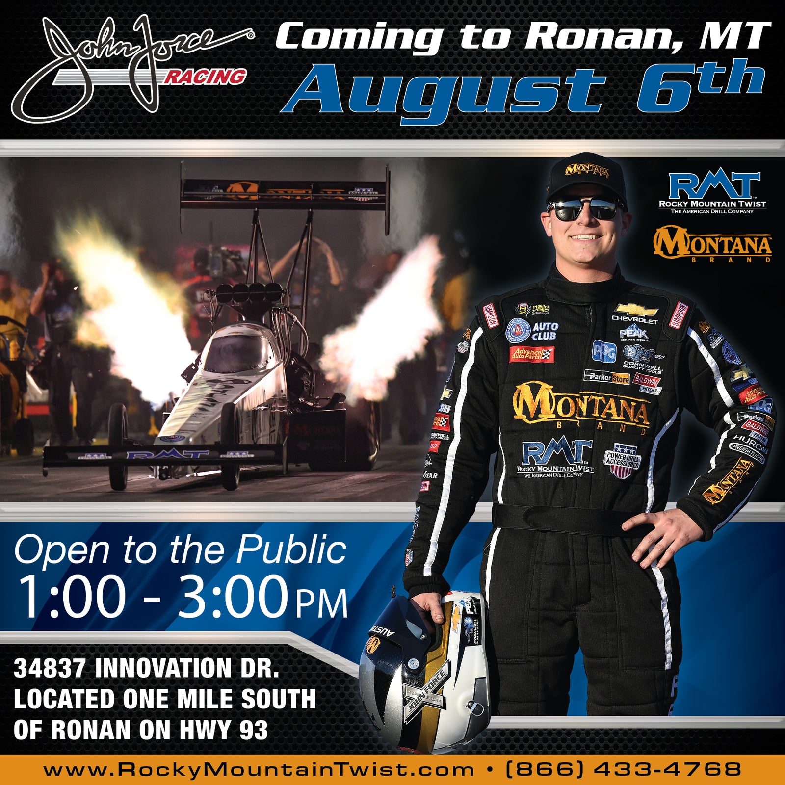 John Force Racing team featuring Austin Prock will be coming to Rocky Mountain Twist on August 6, 2019. Come down to the RMT facility and meet Austin, his crew, and check out his Top Fuel Dragster.